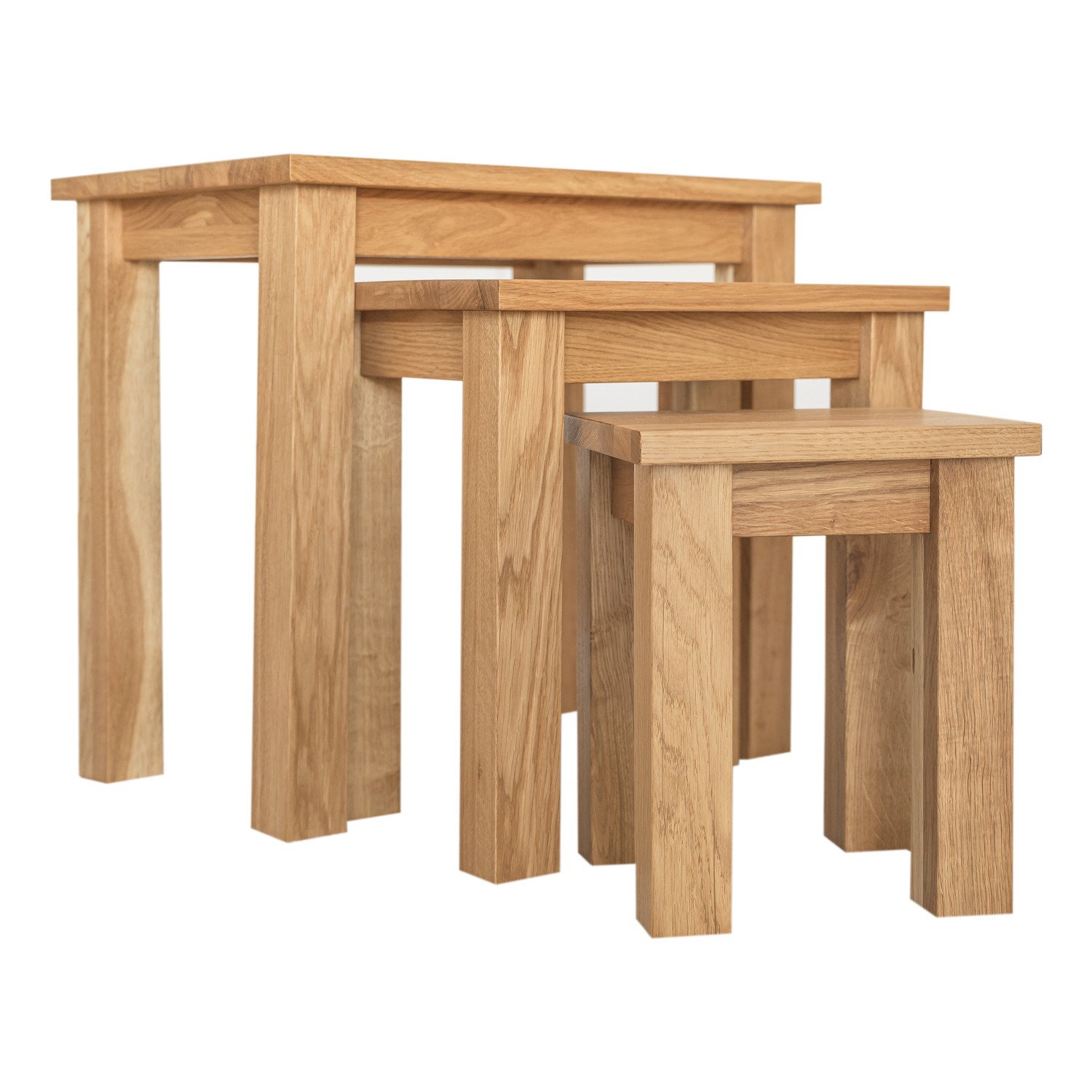 Masivní dubové hnízdo ze tří stolů je z důvodu pohodlí spojeno do jednoho hnízda. Tři stoly různých velikostí jsou úhledně zasunuty do jednoho, aby co nejlépe využily dostupné místo. Nikdy nešetříme na materiálech a v žádném z našich produktů nikdy nepoužíváme dřevotřísku, MDF nebo dýhy.