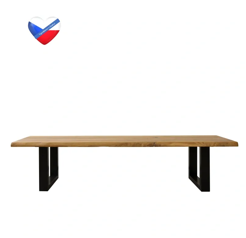 Lavice Domis má 4 cm silnou desku s přírodní hranou a bytelným černým podnožím. Lze ji využít do ložnice k posteli, do chodby k sezení při obouvání a hlavně tvoří krásný celek k jídelnímu stolu Domis. Dodáváme v kuse bez nutnosti montáže.