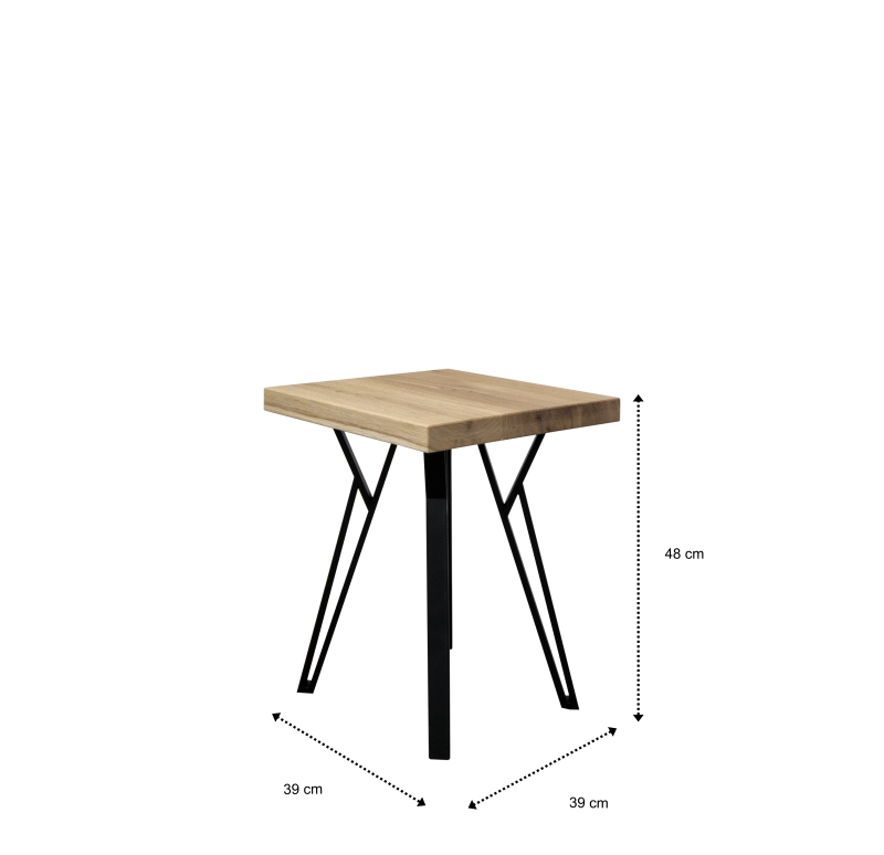 Odkládací stolek Bobo je ideální do menších prostorů. Lehké kovové nohy pomohou udržet vzdušný a moderní ráz interiéru. Deska stolku je ošetřena třemi vrstvami oleje.